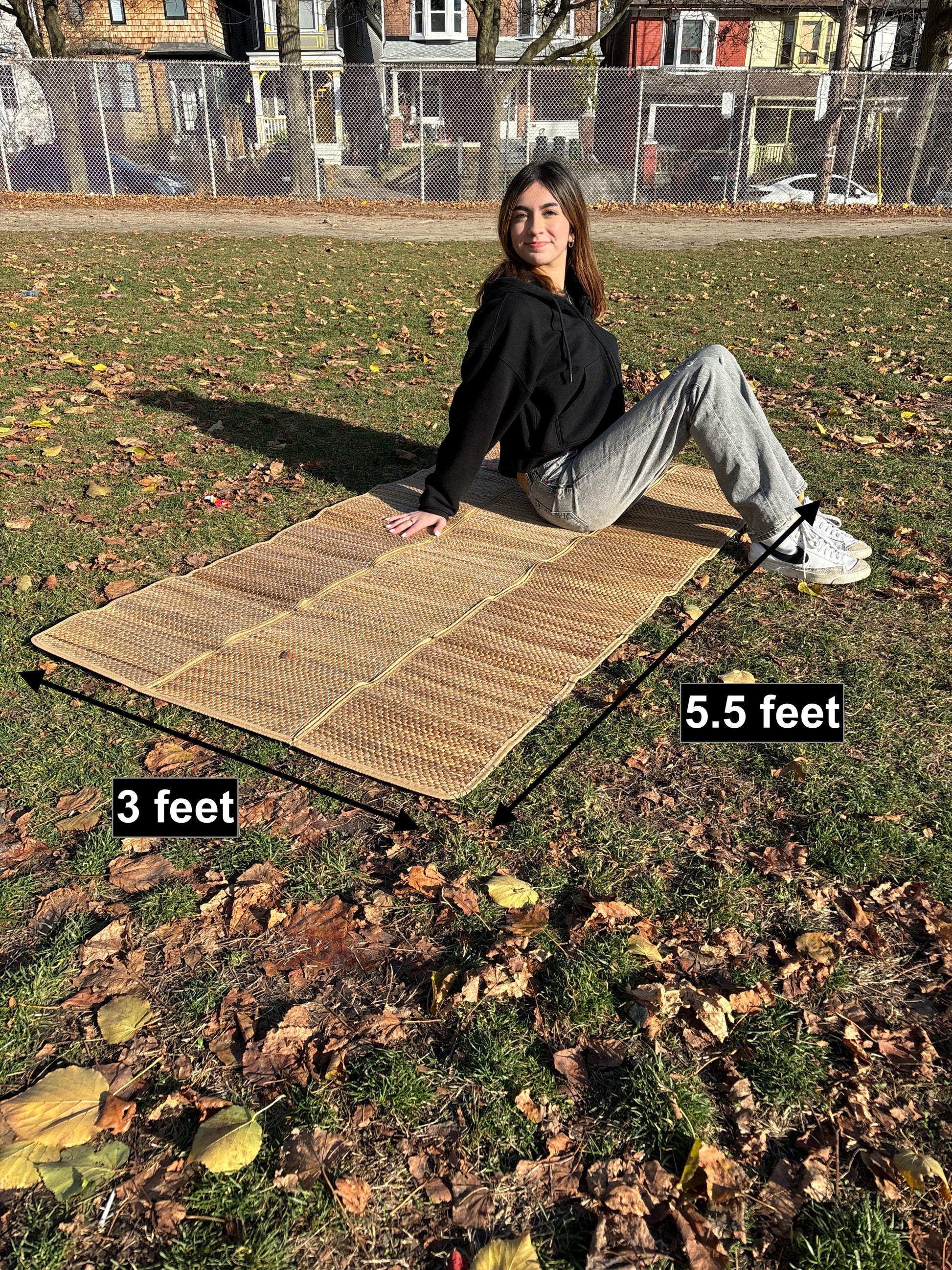 Whether you're looking for a foldable picnic mat, eco-friendly beach blanket, camping ground cover, or simply a biodegradable floor rug for your outdoor moments, this handwoven mat offers comfort with a conscience.